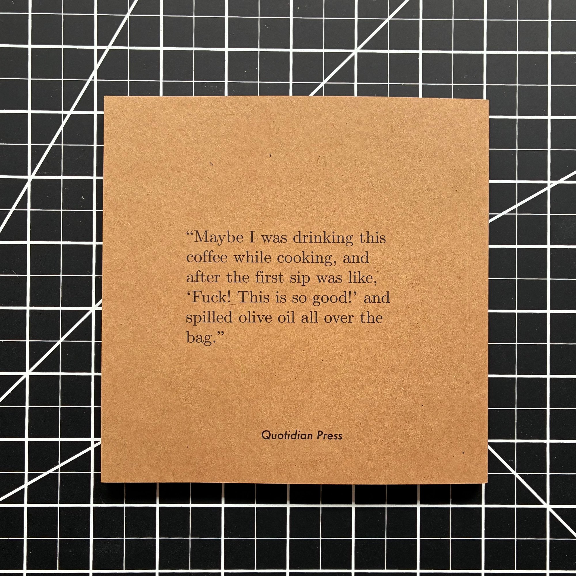 “Something about seeing five years worth of one pantry item was fascinating to me. Once I got really into following different roasters, I loved knowing I was capturing the graphic design of their bags as it shifted and changed over the years. I also enjoyed the thought of the self-effacing quality of making art about this. I didn't give much thought to how the collection would end up, or who would ever see it. But I liked imagining some stranger in the future accurately assessing the project as being made by a middle class artsy boy/man drinking lots of coffee in a rainy city known for its coffee, silly enough to make an art project about the coffee itself. But then, like, actually looking at it.”